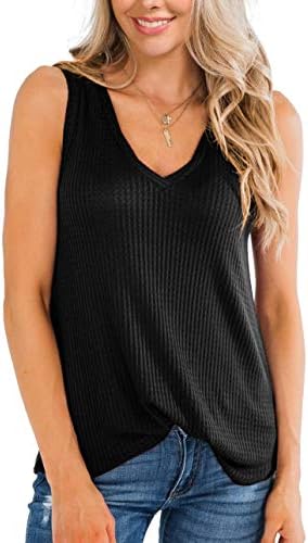 IWOLLENCE Womens Waffle Knit V Neck Tank Tops Summer Casual Sleeveless Shirts Loose Blouses