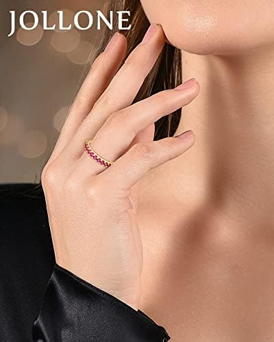 Jollone Eternity Rainbow Ring for Women, 16K Gold Plated Muti Color Red Cubic Zirconia Round CZ Cut Created Gemstone Eternity Band Ring for Teen Girls Jewelry Gifts