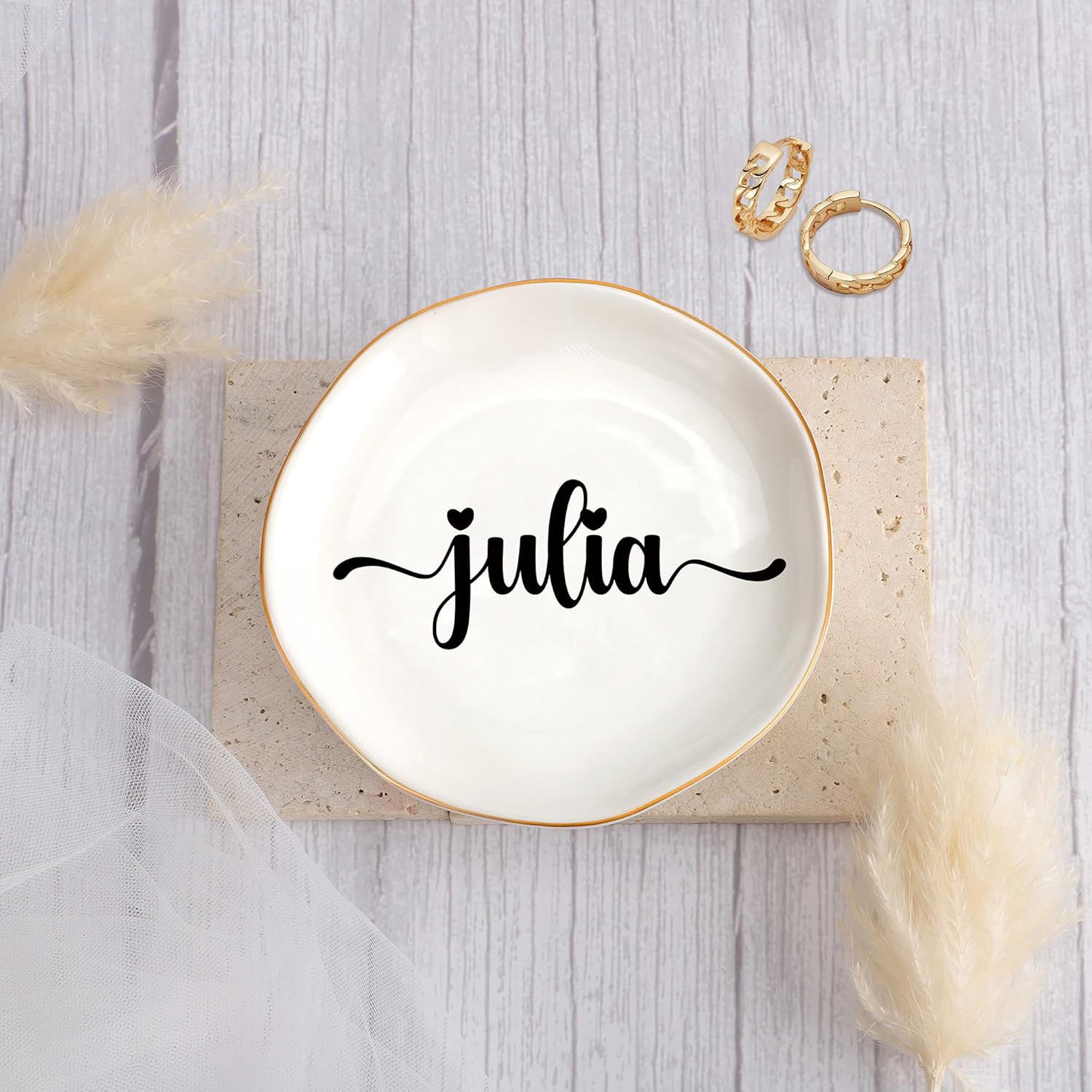 JoycuFF Julia Jewelry Holder Gifts for Women, Personalized Name Jewelry Ring Dish, Bridesmaid Bride Gifts for Wedding Day Anniversary Valentines Day Birthday Gifts for Her Women Wife Girlfriends Mom