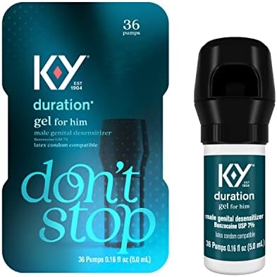 K-Y Duration Gel is an endurance enhancer for men which temporarily prolongs the time until climax to help you have more control and enjoy the moment. Help pleasure her by ensuring you last longer and stay in the moment with the desensitizing agent, Benzocaine is deemed safe by the FDA for the purpose of prolonging the time until climax. Apply a small amount and you are ready to go. Don’t Stop. Now we’re talking. This product is compatible with Latex Condoms. K-Y is the #1 Doctor recommended personal lubricant brand*. This product contains one 0.16 FL OZ (36 Pump) bottle. Our products are delivered in discreet packaging with no indication of parcel contents Use as Directed. *among vaginal lubricants & moisturizers, IQVIA, ProVoice Survey, Feb. 2022.