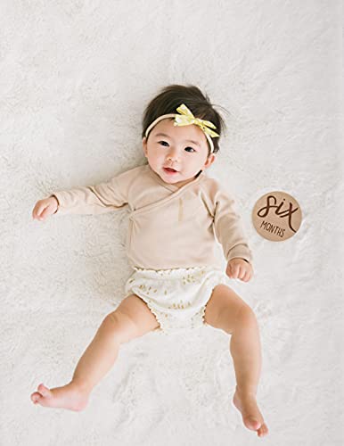 A new mom and dad’s first year with their little one is going to be even more magical than they can possibly imagine - and they’ll want to capture every moment and milestone. Make that task a little easier with this unique newborn gift. Kate Milo Wooden milestone prop collection, the perfect set of photosharing props to help capture every baby milestone during the new baby’s first year. This set comes with six individual circular wooden photo props, all of which are double sided so there’s one for each of your baby boy or baby girl’s first twelve months. The new parents are sure to love using this sweet set of photo props to create monthly baby milestone photos to share with their friends and family. And no matter how elaborate or creative your baby photo shoots get, these rustic yet whimsical photo props are sure to complement your adorable monthly baby pictures. Both durable and portable, these wooden photo props are ready to be taken on location to wherever you decide to create your special monthly baby photos. And in a lovely light brown wood, they make a great gender neutral baby gift for expecting parents at your next baby shower. Item Dimensions: 4″H x 4″w; each photo prop dimensions: 4″w x 4″H; packaged dimensions: 7″W x 5″H x 1″D.