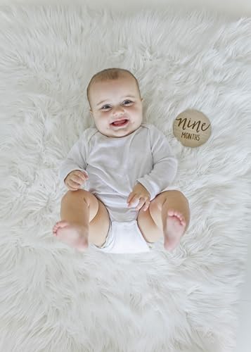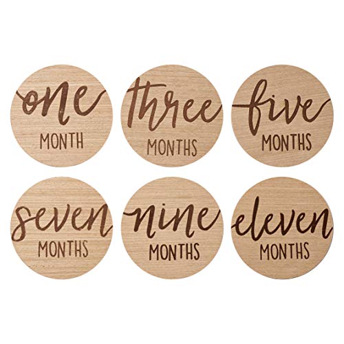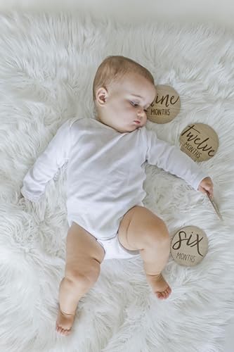 Includes 6 double-sided circular wooden photo props for capturing baby’s first year and monthly milestone