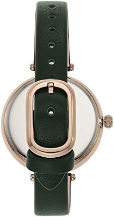 This 34mm holland watch features a green malachite-printed dial with rose gold-tone stick indexes, three-hand movement and a green leather band