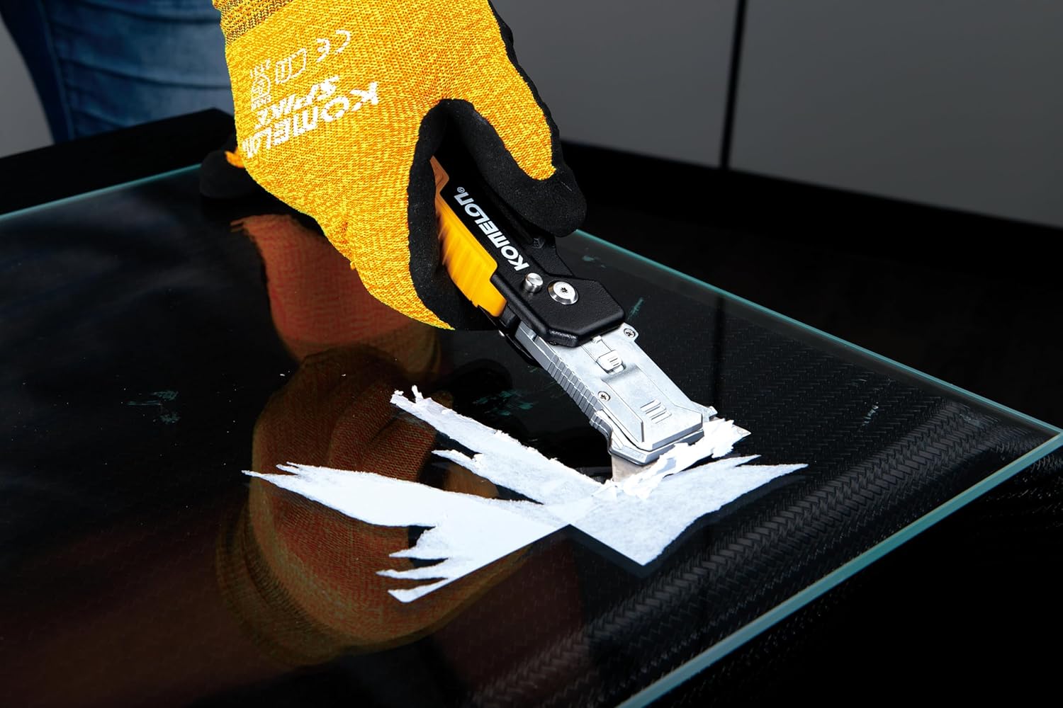 Komelon’s 2-n-1 folding utility knife and scraper tool is engineered for the toughest jobs. The folding utility knife provides a convenient compact size for easy transportation and accessability. It features an innovative transformation to quickly transition into a professional scrapping tool. The press and flip mechanism allows for an easy, 1-handed opening. The quick release blade changing mechanism allows users to make quick, tool-free blade changes to maximize jobsite efficiency. The compact utility knife also has a storage unit in the handle that holds up to 2 replacement blades.