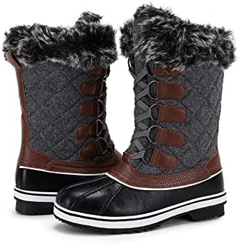 LAICIGO Women’s Faux Fur Snow Boots Mid-Calf Lace-up Waterproof Insulated Quilted Mesh Winter Warm Boots