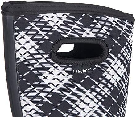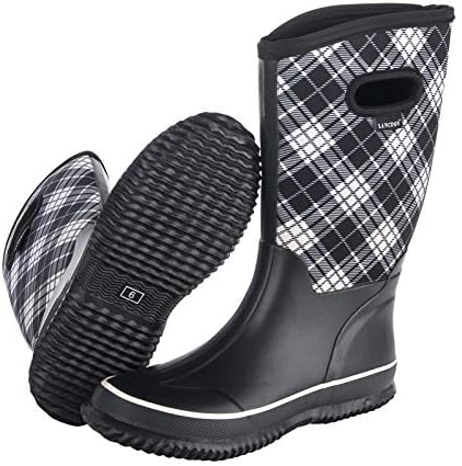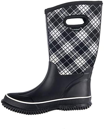 Lancdon Women’s Wide-Calf Waterproof Snow Boots Winter Warm Insulated Neoprene Rubber Rain Boots for Women Waterproof Barn Boots for Ladies (Houndstooth