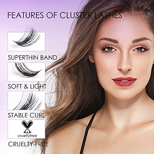 💖 EASY TO USE: An easy challenge! Individual cluster lashes are easy to tweeze from the root with eyelash tweezers and will not fall apart. Hold the cluster by the tweezers and attach the cluster to the underside of your natural lashes. You can barely feel the cluster. (Eyelash glue NOT included)
