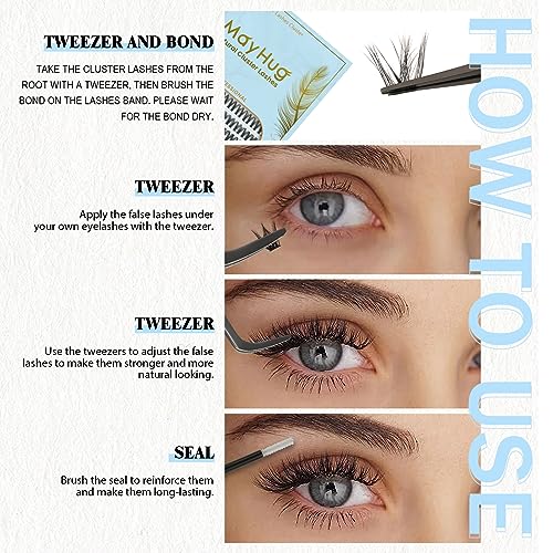 Lash Clusters Mayhug Eyelash lashes D Curl, Individual Lashes Natural Look, 0.05 Super Thin Band & Soft False Eyelashes Clusters, DIY Eyelash Cluster Extensions at Home, Reusable 7-10 Times (Stormy)