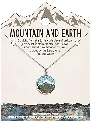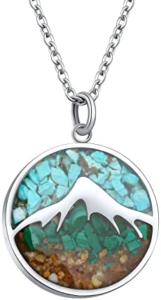 Lauren-Spencer Gemstone Mountain Necklace for Women Turquoise Sodalite Tumbled Chips Pendant Necklace Dainty Circle Mountain Range Necklaces for Women Girls Nature Jewelry Gift