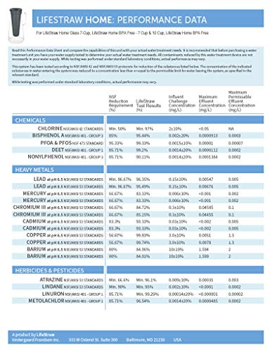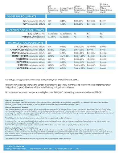 Protects against bacteria, parasites, microplastics, lead, mercury, and chemicals including PFAS, chlorine, organic chemical matter (pesticides and herbicides) and reduces turbidity
