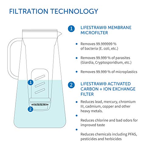 LifeStraw Home 10-Cup BPA-Free Plastic Water Filter Pitcher Tested to Protect Against Bacteria, Parasites, Microplastics, Lead, Mercury, and a Variety of Chemicals (White)