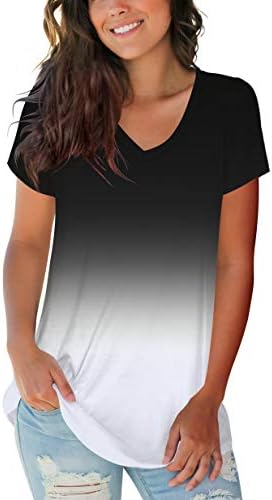 liher Women’s Summer Tops Casual V Neck Short Sleeve Tie Dye Shirts Ombre Basic Tops