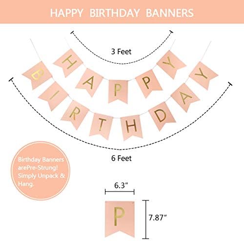LITAUS Birthday Decorations, Pink and Gold Happy Birthday Decoration for Women, Happy Birthday Banner, Hanging Swirls, Paper Garland for Baby Shower, Birthday Party, Girls Birthday, Party Decorations