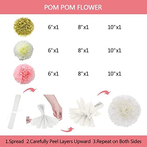 EASY TO ASSEMBLE: Girls Birthday Decorations Has An Instruction To Assemble Step By Step. We Provide the Detailed Instruction For the Paper Flowers. Very Easy to Operate and Décor The Birthday Wedding Party, Great Choice of Girl First Birthday Supplies.