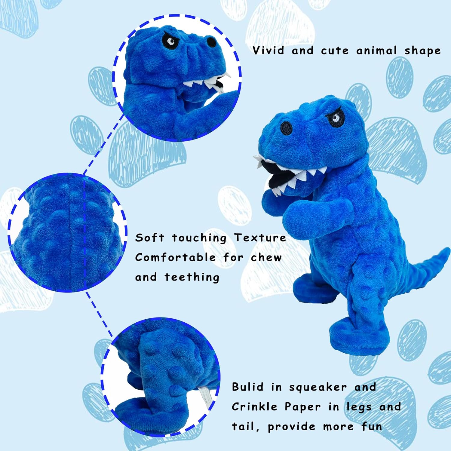LWBMG Squeaky Dog Toys Stuffed Dog Toys Cute Dinosaur Plush Dog Toy with Crinkle Paper Durable Dog Chew Toys for Small, Middle and Large Dogs
