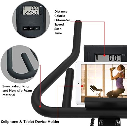 【Large LCD Monitor & iPad/Tablet Device Holder】The LCD monitor on the bike displays your time, speed, distance, calories burned etc. The tablet phone bracket securely holds mobile devices and allows you to follow along your favorite fitness videos or program to enjoy exercising and entertainment simultaneously.
