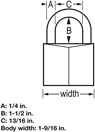 1-9/16 in. (40 mm) wide lock body; 1/4 in. (6 mm) diameter shackle with 7/8 in. (22 mm) length, 13/16 in. (21 mm) width