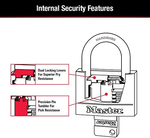 The Master Lock 141TLF Covered Solid Body Padlocks with Key feature a 1-9/16 in. (40 mm) wide black vinyl covered body for scratch and corrosion resistance. The 1/4 in. (6 mm) diameter shackle is 1-1/2 in. (38 mm) long and made of hardened steel, offering extra resistance to cutting and sawing. The 4-pin cylinder prevents picking and the dual locking levers provide resistance against prying and hammering. Includes two locks and two keys, each key opens both locks. The Limited Lifetime Warranty provides peace of mind from a brand you know and can trust.