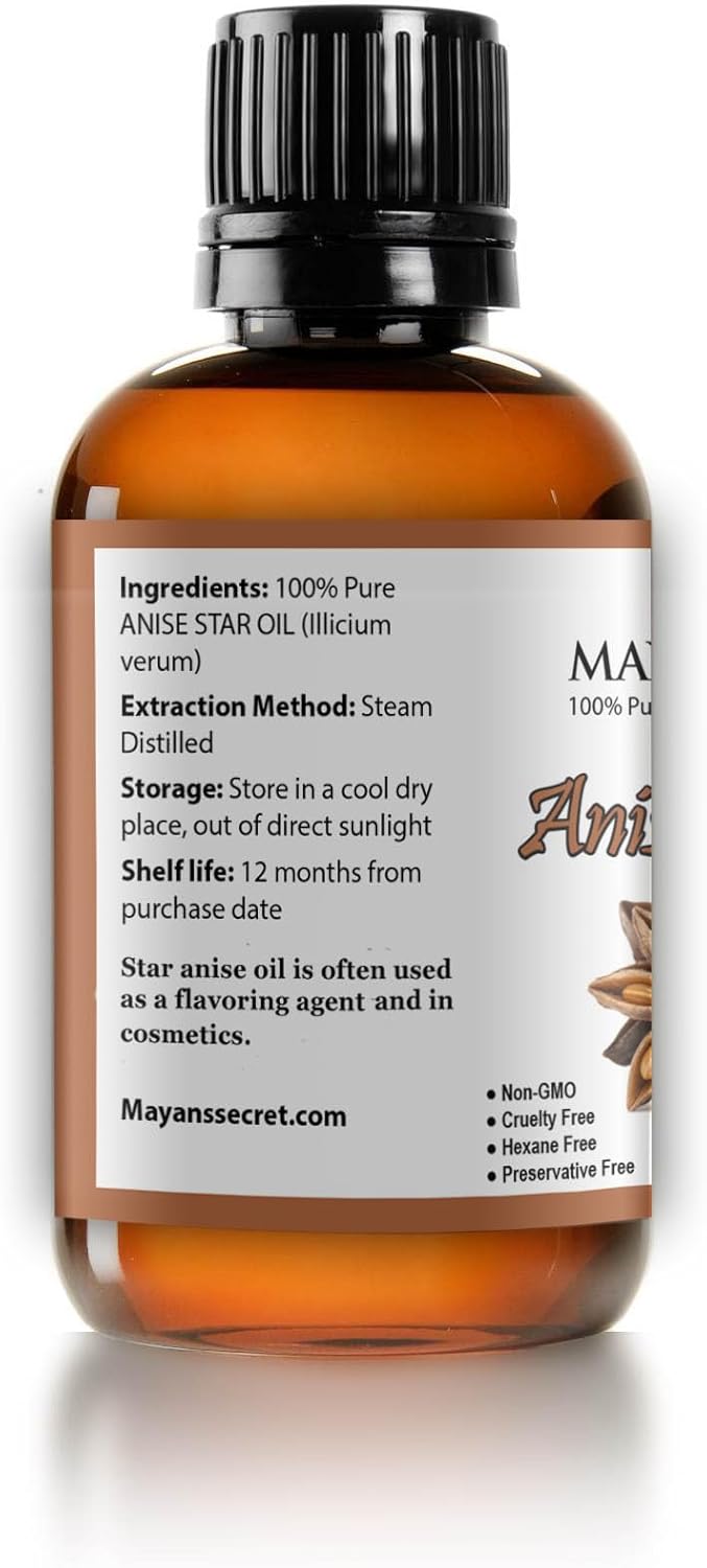 Mayan’s Secret Star Anise Extract Essential Oil, Steam Distilled, 100% Pure Undiluted for Baking, Cooking, Flavoring, Aromatherapy, and DIY Recipes, and Pure Anise Oil for Baking, 4oz – Amber Bottle