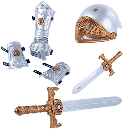 A suit of armor fit for a brave knight! This 9-piece plastic costume set will outfit a gladiator for imaginary battles and epic adventures! Set includes 2 Combat Swords, Gauntlet, Breastplate, Helmet, Shields, and Wrist Guards.