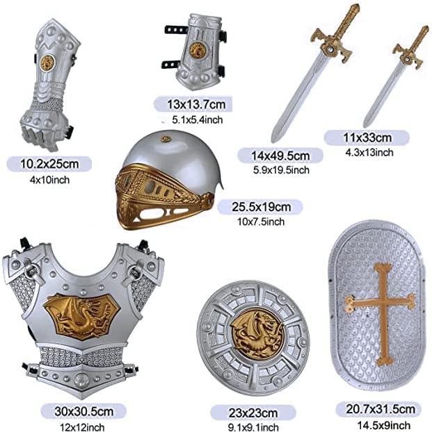 DRESS UP: Ideal for kids Medieval Knight Warrior pretend play and Halloween dress-up or cosplay. Use your imagination and be a noble knight! Armor pieces fit most kids aged 3 – 6.