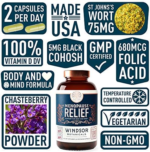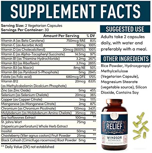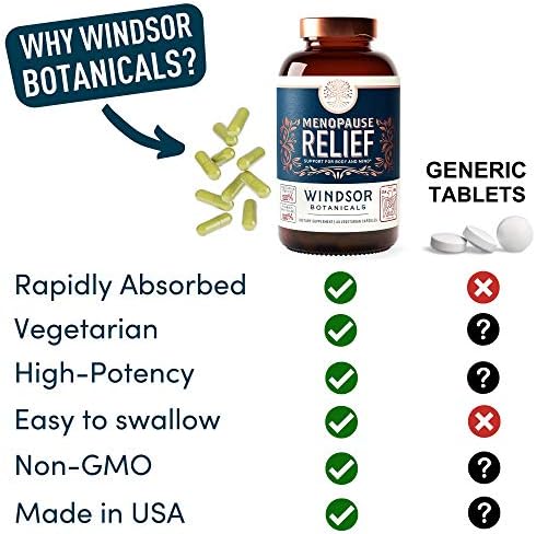 Menopause Relief Supplement for Women – Support for Hot Flushes, Sweats, Mood, and Insomnia – Windsor Botanicals Estrogen Balance Multivitamin, Mineral, and Naturals Formula – 60 Vegetarian Capsules