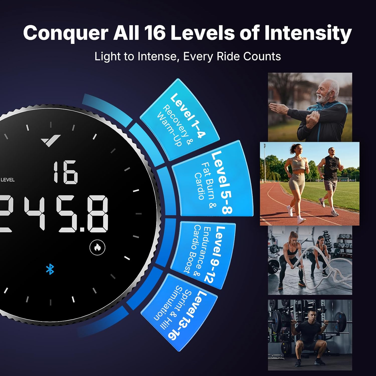 One Exercise Bike, Full-Body Training: With 16 levels of resistance, this self-powered stationary bike adapts easily from gentle rehab sessions to intense cardio. Built-in resistance bands add low-impact upper-body training—so you can burn calories, build strength, and stay joint-friendly in one recumbent exercise bikes for home