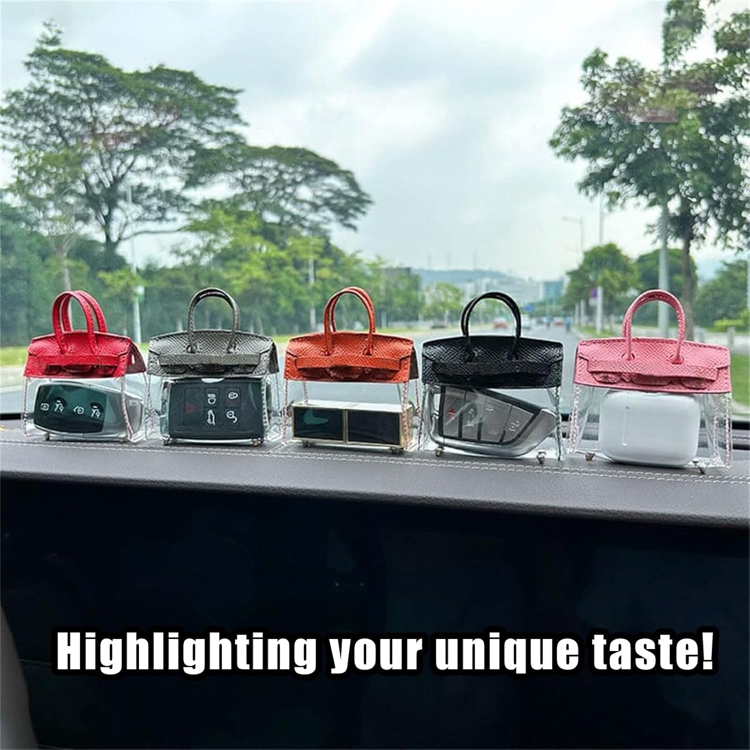 Mini Creative Handbag Design Car keychain,Women Car Key Bag Mini Handbag,Exquisite Transparent Small Handbag,Headphone Bags with a Keychain