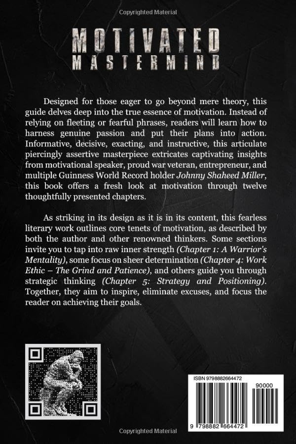 Designed for those eager to go beyond mere theory, this guide delves deep into the true essence of motivation. Instead of relying on fleeting or fearful phrases, readers will learn how to harness genuine passion and put their plans into action. Informative, decisive, exacting, and instructive, this articulate piercingly assertive masterpiece extricates captivating insights from motivational speaker, proud war veteran, entrepreneur, and Guinness World Record holder Johnny Shaheed Miller, this book offers a fresh look at motivation through twelve thoughtfully presented chapters.