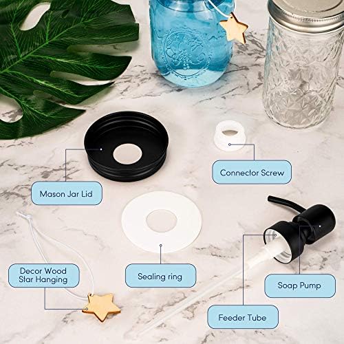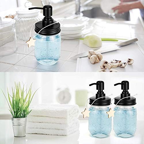 muscccm (2 Pack Soap Dispenser Set, Mason Jar Pump Lid Soap Dispensers for Homemade Lotions, Shampoos and Massage Oils(with Star Shape Wood tag)