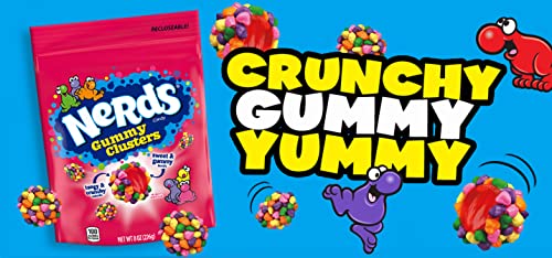 A NERDSTASTIC EXPERIENCE: Classic NERDS candies cover a gummy candy center to make tasty bite-sized clusters that are too good for words! Each NERDS gummy cluster is a crunchy, chewy, sweet, and tangy explosion of strawberry, grape, orange, and lemonade flavors.