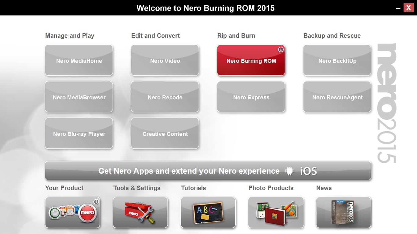 Nero Burning ROM 2015. Burn, convert, copy and archive all your files & memories.