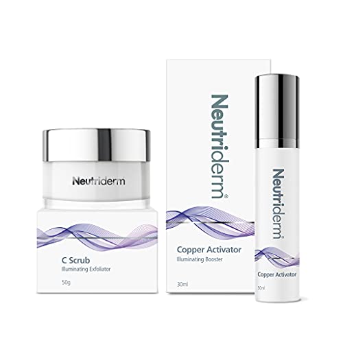 Neutriderm C Scrub & Copper Activator – Deep Pore Cleanser + Advanced Anti-Aging Facial Scrub and Hydrating Face Serum with Vitamin C for All Skin Types ( Pack of 2 )