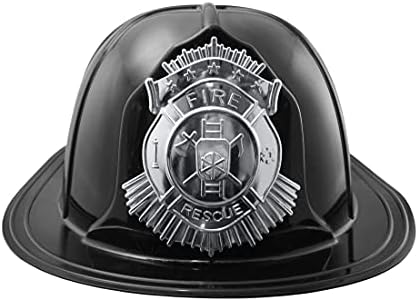 Nicky Bigs Novelties Deluxe Fireman Helmet. Transform into the everyday Hero. This helmet features a silver hard plastic badge emblem. This plastic costume helmet is made of thick durable material. Perfect for Halloween, Cosplay, Theater and more! One Size has thick foam pieces on the side and fits up to 59 cm or 23 inches. Select from Red or Black Helmet. Each helmet is sized approximately 13 inches long and 9.5 inches wide. For Ages 14 and older.