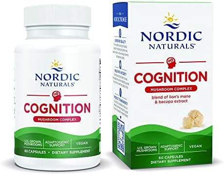 Nordic Naturals Cognition Mushroom Complex, Unflavored – 60 Capsules – Brain, Memory & Mood Support – Blend of Lion’s Mane Mushroom & Bacopa Extract – Non-GMO – Certified Vegan – 30 Servings