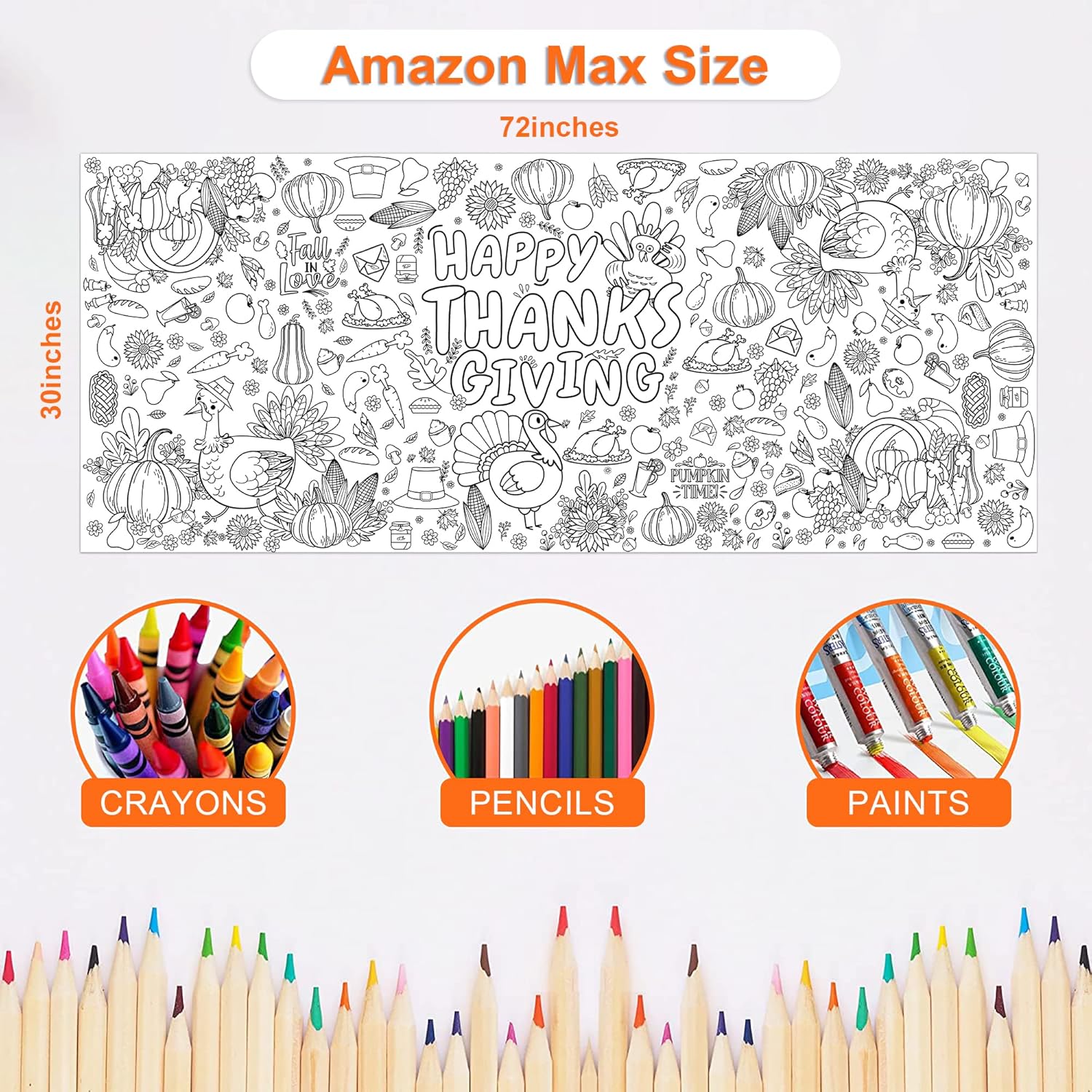 [Giant Coloring Poster]:Happy Thanksgiving banner.The size of this large coloring poster not only helps create a large arts and crafts area…it also can serve as a tablecloth, keeping your table clean from the kid’s messes.Thanksgiving decorations.