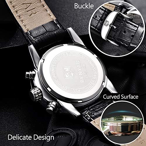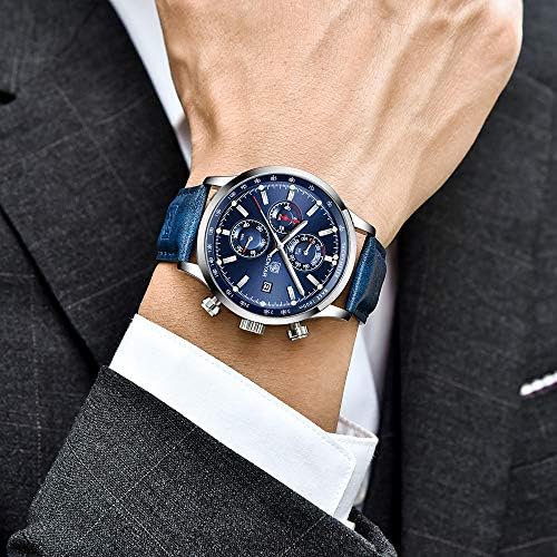 Original Mens Quartz Watch Unique Sport Watches for Men Fashion Wrist Watch Leather Waterproof Watch Luminous Hands Chronograph Calendar Outdoor Gifts…