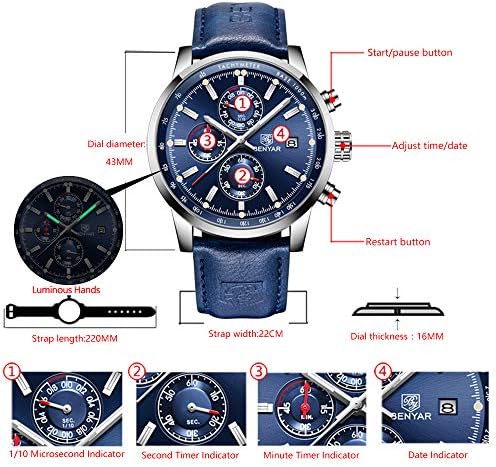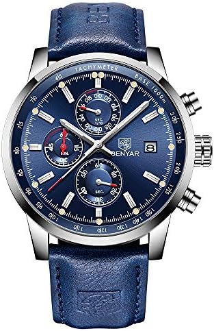 【Mens Watches】This is quartz watches for men, and The delicate blue dial is pretty beautiful. All the small dial are work normally, including stop watch ( Suitable for many kinds of sports occasion, so it can also be a pretty good sports watch ) , calendar. Unique and elegant design, this wristwatch comes with a nice original box, really a good Christmas gift for your friends and family. ⌚