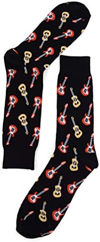 PARQUET Men’s Fun Crew Socks, Sock Size 10-13 / Shoe Size 6-12.5, Great Holiday/Birthday Gift (Guitars Red & Yellow), Large…
