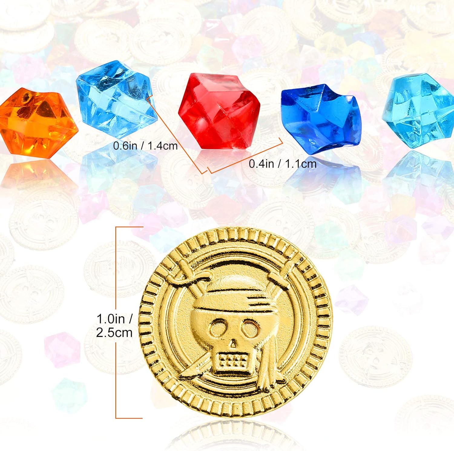 Quality material: the gems are made of acrylic, and gold coins are made of durable and safe plastic, sturdy and non-toxic, suitable for party decorations
