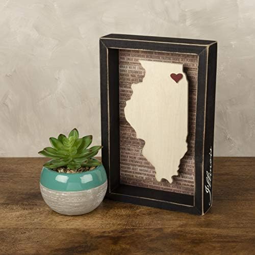 This wooden inset box sign features a dimensional Illinois state silhouette, background list of the most populated cities, and adhesive mini heart to place on a hometown or favorite spot. Includes a back sawtooth hanger or can free-stand alone on a desk, mantel, or shelf. stitching, and fabrics. In 1997, Kathy made her first “primitive candle box” by hand, taking care into each detail from the sanded edges to the type of ribbon tied on the wire handles, each was a work of passion. As Primitives by Kathy grows, the company works to give back, starting with an initial relationship with goodwill services and expanding into several more charitable causes held both by the company and those the company supports on behalf of their employees. They are constantly inspired by the people, places and things around us. Kathy travels the world to pull inspiration first hand from cultures around the globe. Look for all of Primitives by Kathy for inspirational, fun, sarcastic, and heart-warming gifts and home decor. You’ll want to have one for yourself and another for someone you care about.