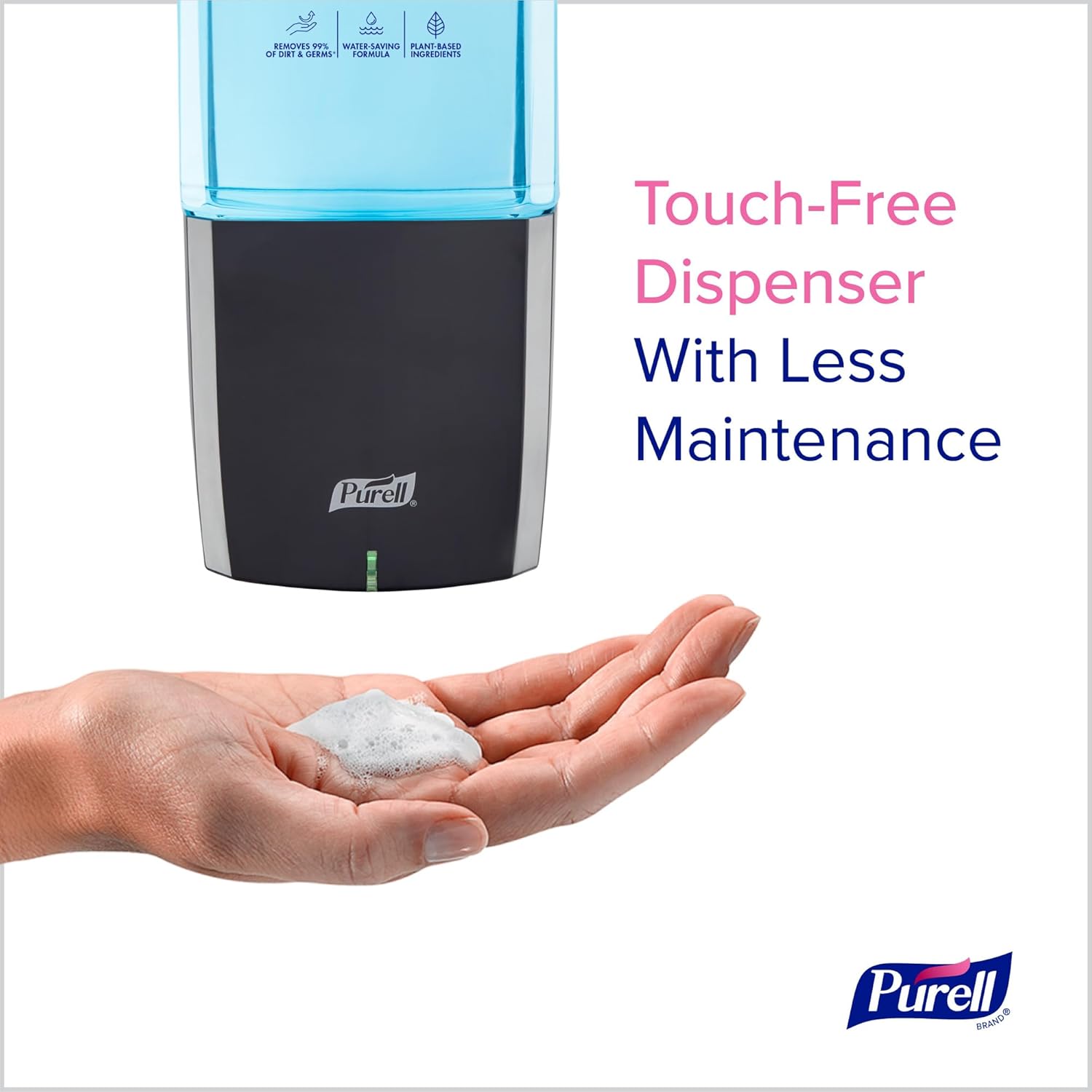 The PURELL ES10 Automatic Hand Soap Dispenser Starter Kit with PURELL HEALTHY SOAP with CLEAN RELEASE Technology requires less maintenance thanks to a fresh battery built into every refill, so you never have to change or buy batteries!* Plus, transparent refills make it easy to check product levels without opening the dispenser. Each refill has 30% less plastic and 38% lower greenhouse gas emissions.** The refill bottle, collar, and AA battery are easy to pull apart and recycle. The ES10 dispenser has a slim profile that fits in tight spaces and quietly dispenses highly effective, rich foam hand soap, delivering more ways to impress. PURELL HEALTHY SOAP with CLEAN RELEASE Technology Fragrance-Free Foam cleans better than regular soap***without irritating ingredients. The patented PURELL formula reaches into skin’s cracks and crevices 2X better than regular soap to lift away more than 99% of dirt and germs. You can see the difference as it rinses quickly and cleanly, saving time and water. Case Includes: 1 — PURELL ES10 Automatic Hand Soap Dispenser in Graphite can be mounted with included adhesive tape or screws (not included). Dispenser dimensions are 10.31” h x 4.33” w x 3.96” l. Includes one 1200 mL PURELL HEALTHY SOAP with CLEAN RELEASE Technology Fragrance-Free Foam refill. GOJO is proud to be certified as a Women’s Business Enterprise by the Women’s Business Enterprise National Council (WBENC). *Under normal usage conditions. **Compared with PURELL ES8 Dispensing System.***All references to regular soap are based on our top-selling non-antibacterial soap.