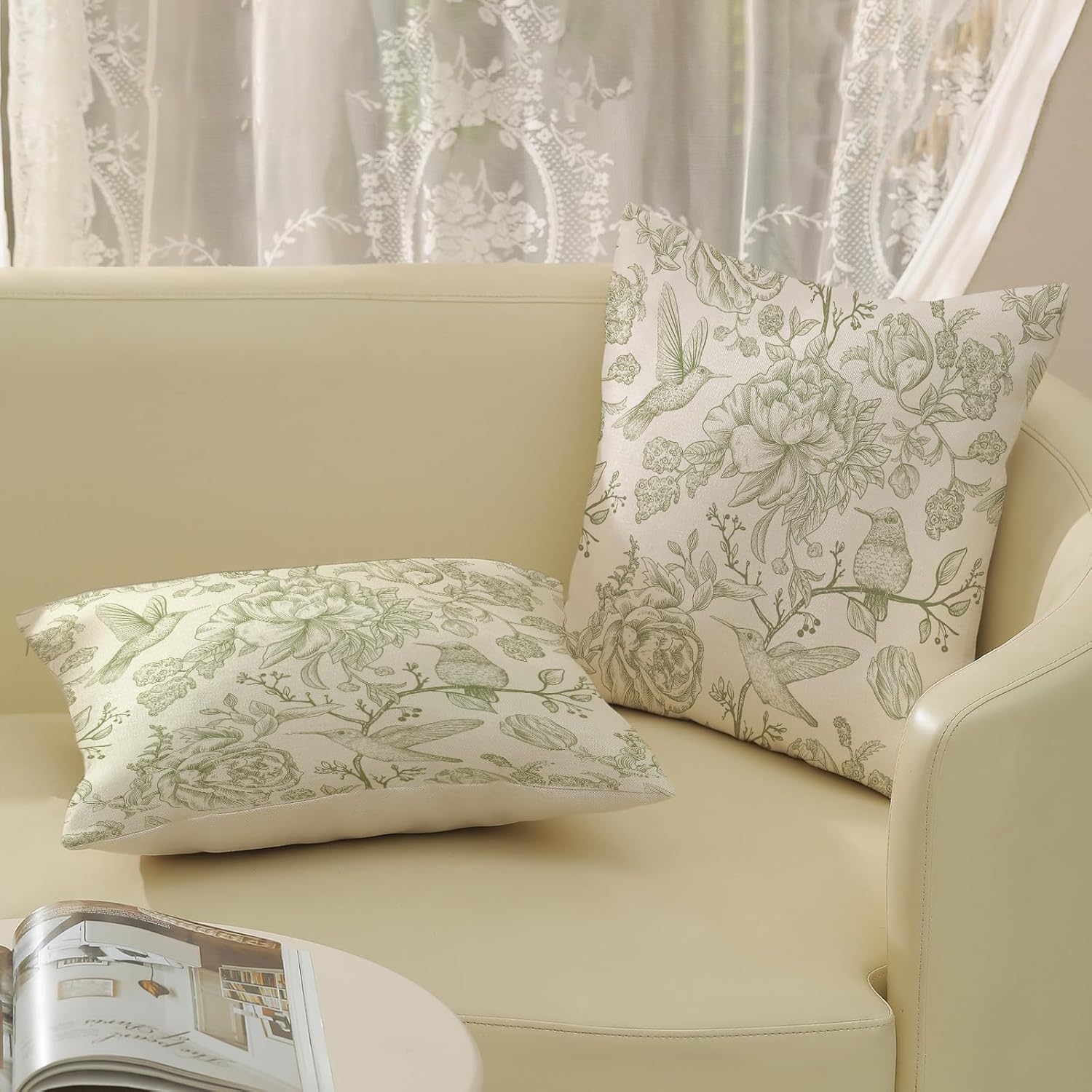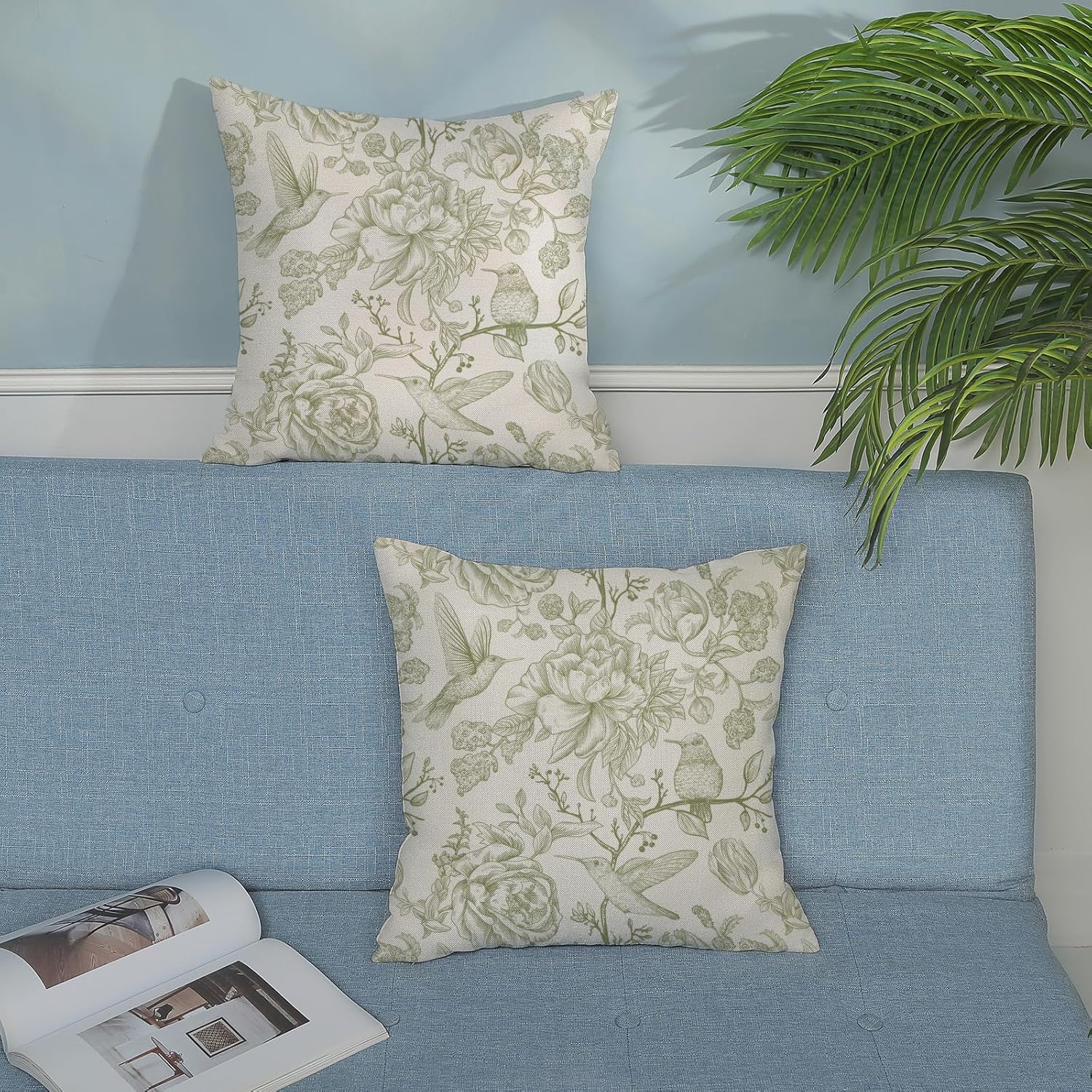 【Size and Material】Our Chinoiserie pillow covers 18×18 set of 2 is made from 100% durable linen material, featuring a fade-resistant sage green hummingbird floral design. These Chinoiserie decorations pillows perfectly enhance your home decor