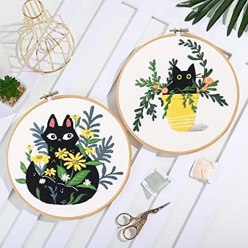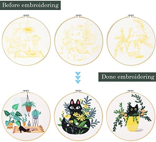 Santune 3 Pack Embroidery Kits for Adults Cross Stitch Kits for Beginners Hand Embroidery with Cat Patterns and Instructions Hobby Kits for Adults with Embroidery Hoops, Threads and Needles