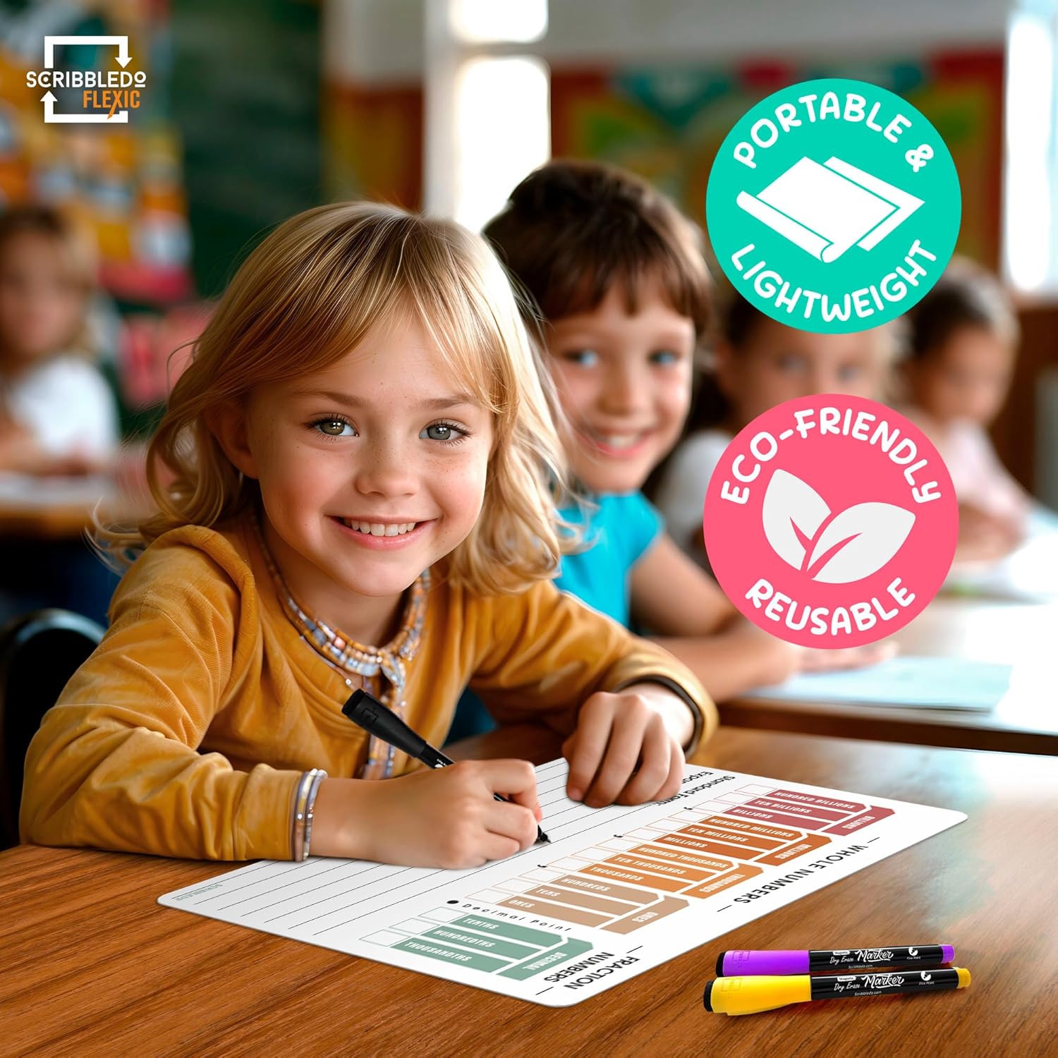 Introducing Scribbledo FLEXIC – Our newest collection of flexible dry-erase sheets offers the same high-quality surface as our traditional boards but with added flexibility. These sheets are designed to be more affordable, lightweight, and space-saving, perfect for classrooms, homes, or on-the-go learning without the bulk of standard boards.