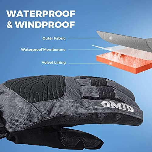 Ski Gloves Men, OMID Snow Gloves for Men 3M Thinsulate Snowmobile Gloves, Windproof Snowboard Gloves for Skiing