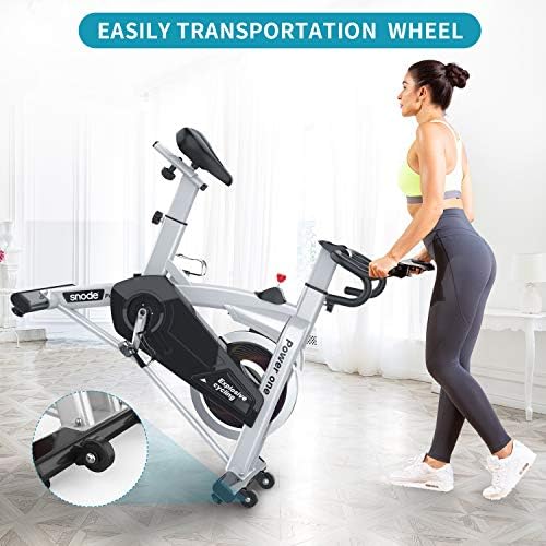 SNODE Indoor Cycling Bike Stationary, Exercise Bike with 35lbs Flywheel, Adjustable Seat Cushion, Tablet & Bottle Holder and LCD Monitor