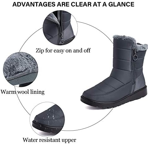 Solacozy Girls Snow Boots, Womens Waterproof Boots Fur Lined Winter Boots Anti-Slip Outdoor Winter Shoes Mid-Calf Booties Flat Walking Shoes Sneakers Botas De Nieve Para Mujer
