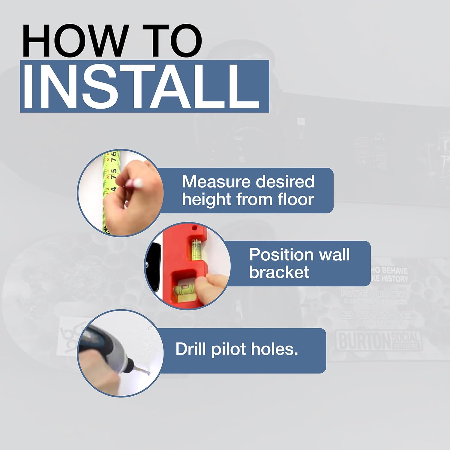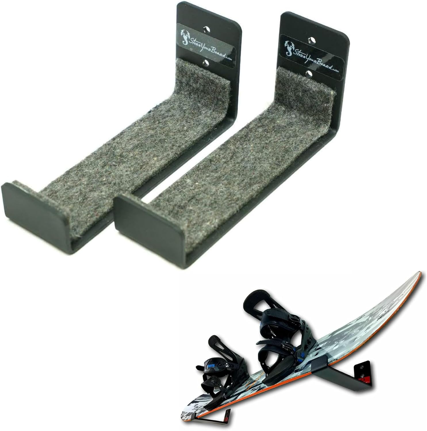 SNOWBOARD WALL RACK: Indoor snowboard storage that also doubles as a display! Organize your garage, home, apartment, or rec room with this floating wall mount.