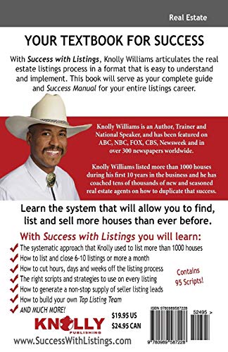 In Success with Listings, Knolly Williams articulates the real estate listings process in a format that is easy to understand and implement. This book will serve as your complete guide and Success Manual for your entire listings career.